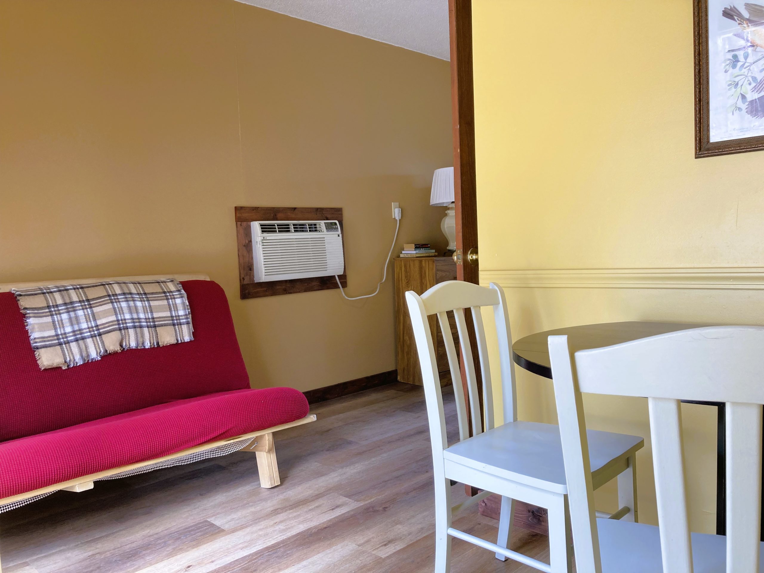 Rates start at $125 for the first night and $100 per additional night after that, with a maximum 4 total guests. The cabins are sized most comfortably for 2 people but can sleep 4 with the queen futon pulled out. Call to ask about our pet-friendly cabin! We also have a safe place to park your trailer if you’re off-roading.