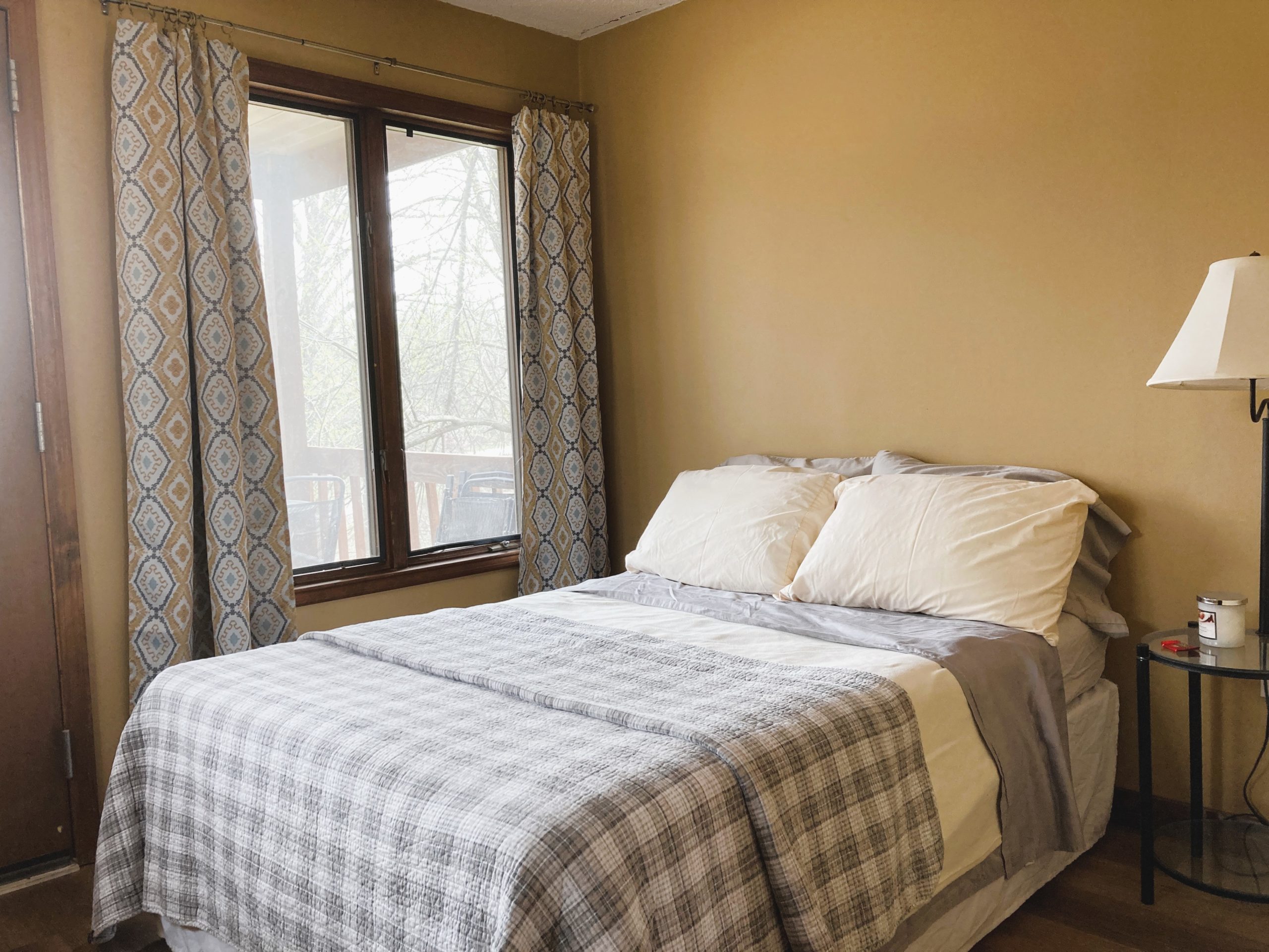 Our cozy hilltop cabins have a sunny deck and are backed by acres of lush trees. You’ll find open meadows in front and to the side of the cabins where you can have a bonfire in our large fire pit, or enjoy the view from your deck over Fry Creek and our seasonal pond.