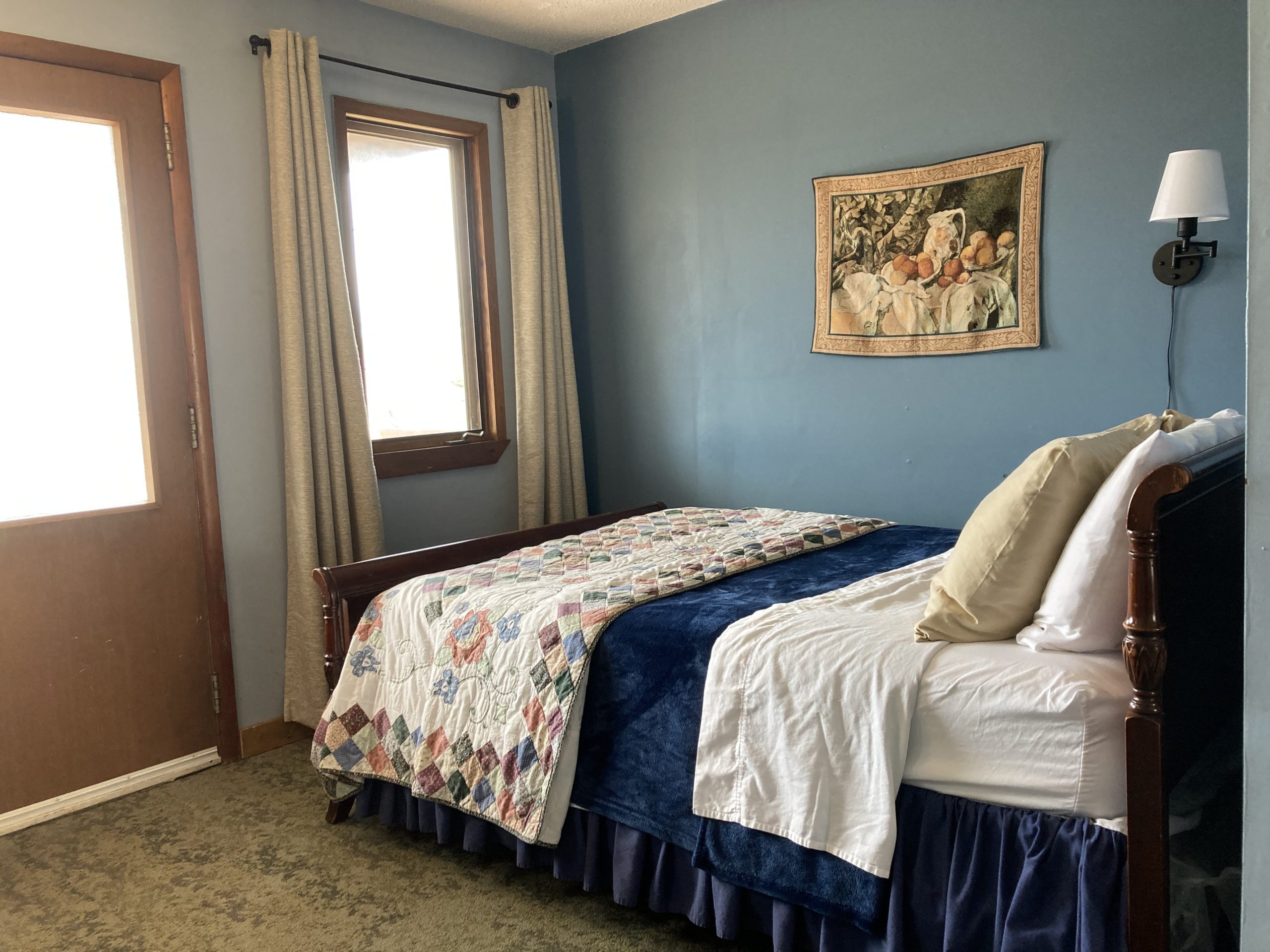 - Our cabins have a full size bed and queen futon, OR two twin beds and queen futon, plus a kitchenette with fridge, sink, microwave, Keurig coffee maker, and toaster (no stove/oven)